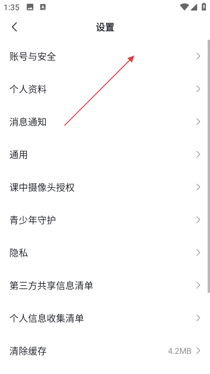 3、在设置界面,找到并点击【账号与安全】选项,进入账号与安全设置页面。
