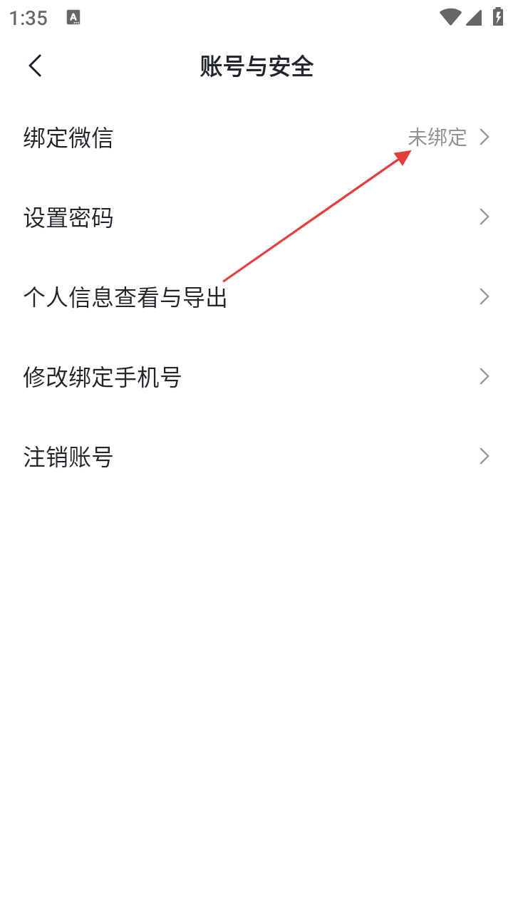 4、在账号与安全页面,可看到【绑定微信】等选项,可根据需求进行微信绑定等操作。