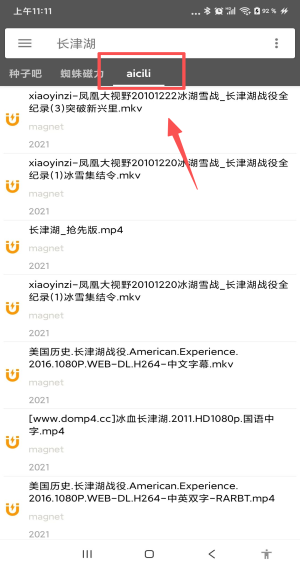 3、输入关键词如长津湖,挑选高清MKV或MP4磁力链接即可。
