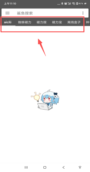 1、打开鲨鱼搜索首页,选择aicili或蜘蛛磁力等引擎入口。