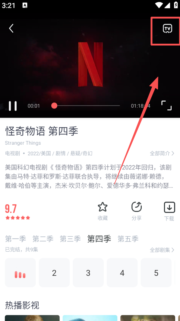 3、找到目标影视后点击进入播放页,可点击右上角 TV 图标进行投屏播放。