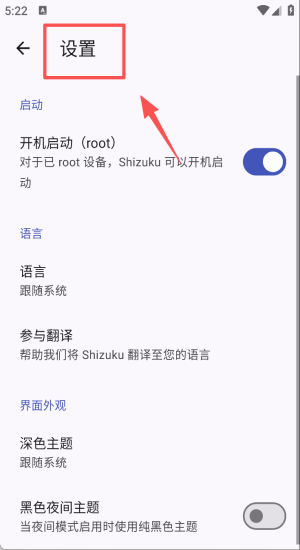 3、进入设置勾选“开机启动”与深色主题,确保跟随系统自动重启。