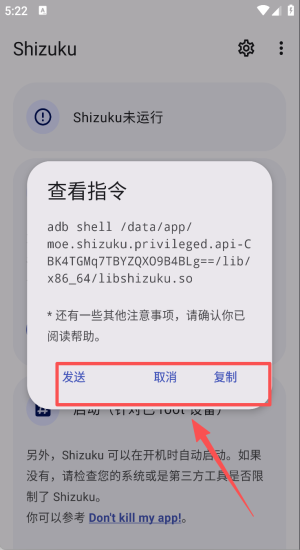 2、在电脑端运行已复制指令,回车确认手机端Shizuku成功激活。
