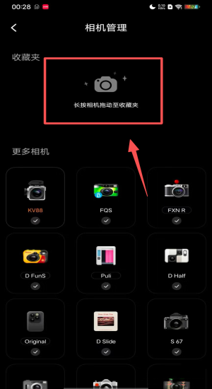 2、长按相机拖入收藏夹,方便下次快速调用常用机型。