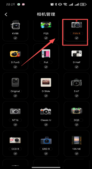 1、进入相机管理滑动挑选心仪胶片机,点击即可立即开拍。