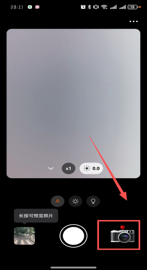 3、取景界面长按屏幕可预览成片效果,确认构图再按快门。