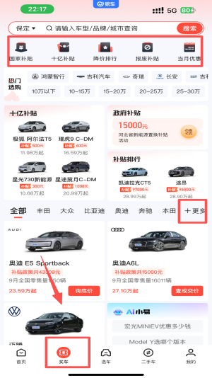 3、查看补贴:点击“十亿补贴”查看可用的购车补贴和优惠信息。