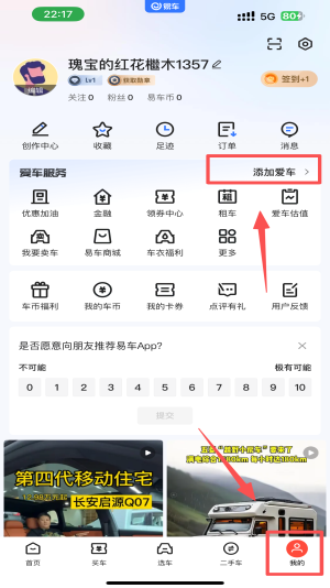 4、添加爱车:在“我的”页面点击“添加爱车”管理您的车辆信息。
