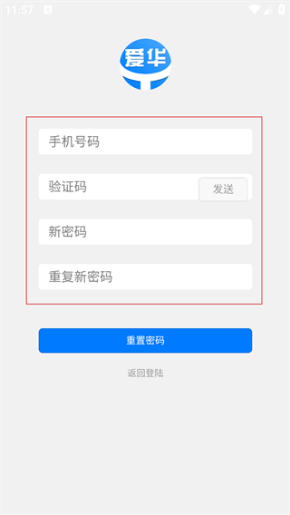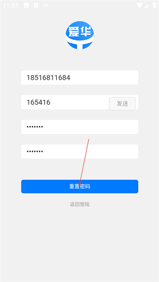4、完成信息填写后,点击【重置密码】按钮,即可完成密码重置,之后可使用新密码登录APP。