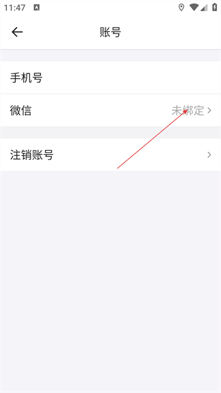 4、在账号界面,点击【微信】栏的“未绑定”选项,按提示完成微信绑定操作。