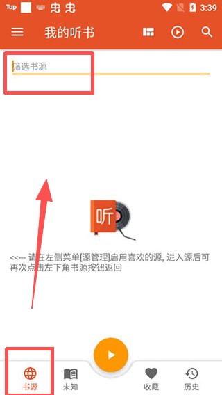 1、进入书源页面,在 “筛选书源” 栏下,可切换不同的听书源,挑选适配的音频内容来源。