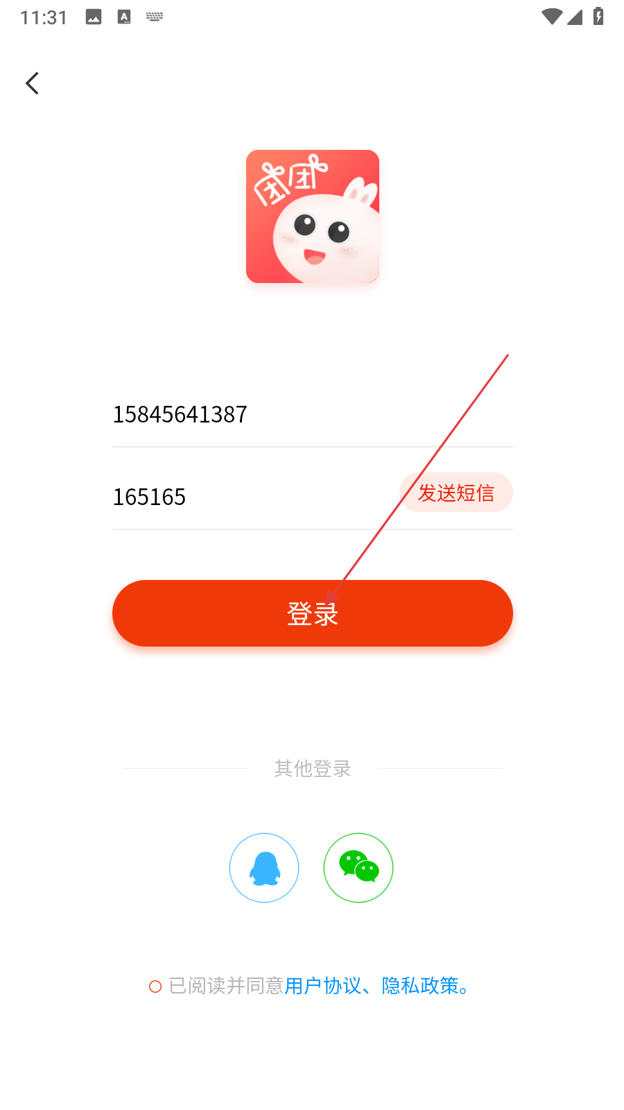 4、在登录界面中,输入手机号码和验证码,完成信息填写后点击【登录】按钮,即可完成账号登录操作。