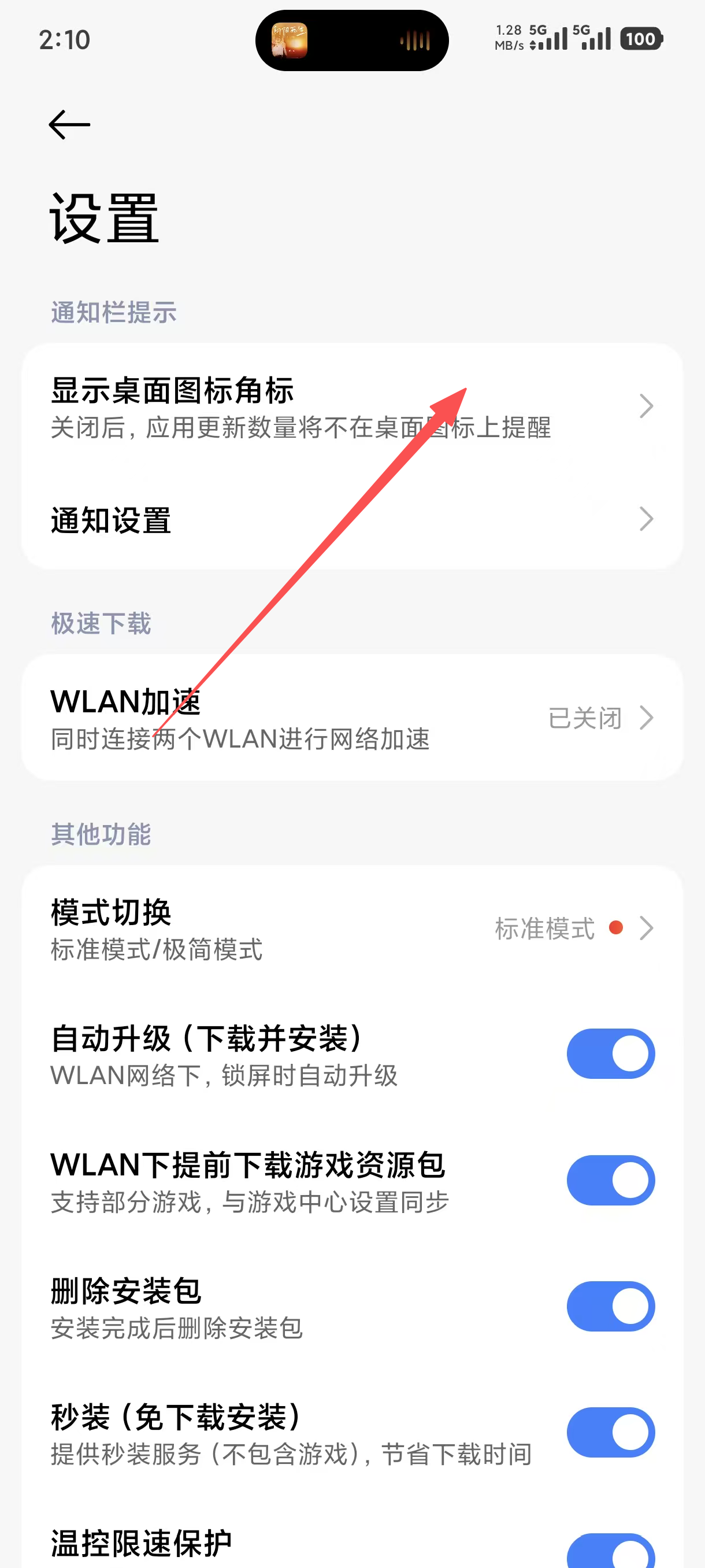 4、在通知设置界面,点击【桌面角标】即可关闭角标功能。