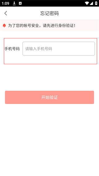 4、在“忘记密码”页,输入绑定的手机号码,点击【开始验证】,完成身份校验后重置密码。