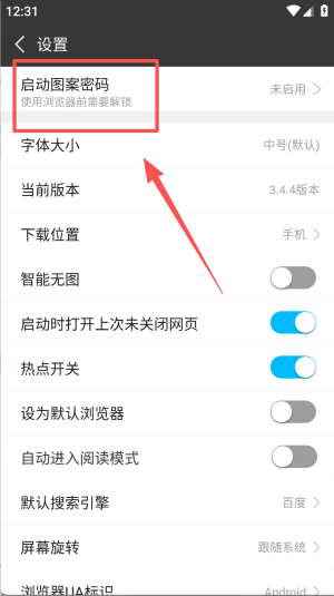 3、点“设置”进入隐私中心,启用图案密码后每次打开需解锁才能浏览。