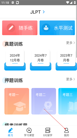 1、在应用的“练习”主界面,点击底部导航栏的【我的】选项,进入个人中心页面。