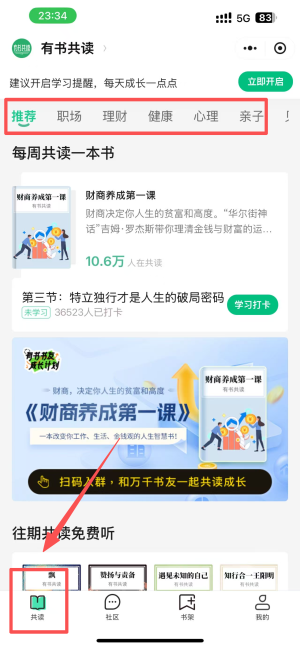 1、开启共读按钮,同进行选择喜欢的阅读内容。