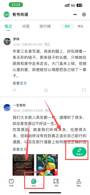 3、点击“写笔记”按钮,记录并发布你的读书感想和收获。