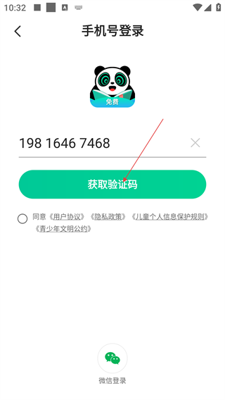 4、勾选同意相关协议后,输入验证码即可完成手机号登录操作。