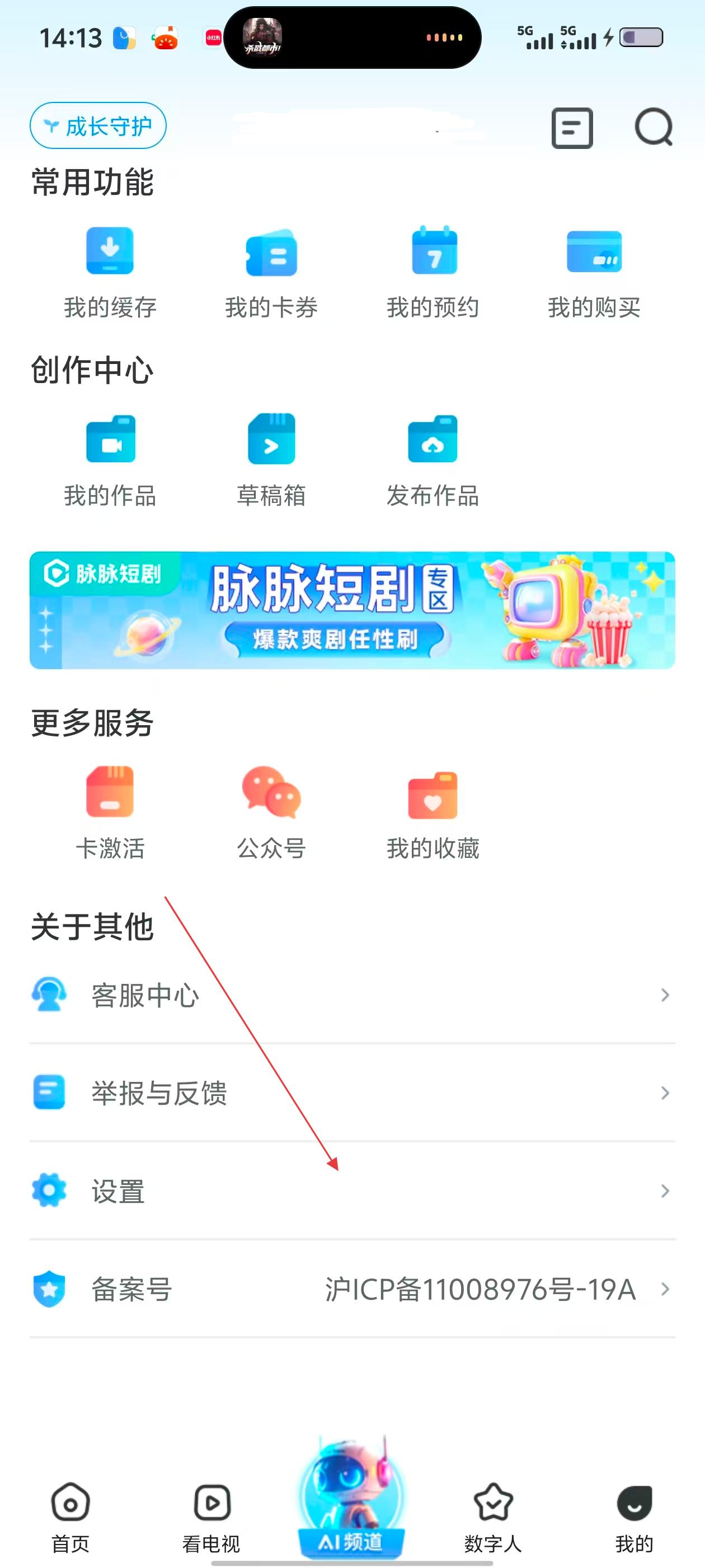 2、在个人页面,点击【设置】选项,进入设置界面。