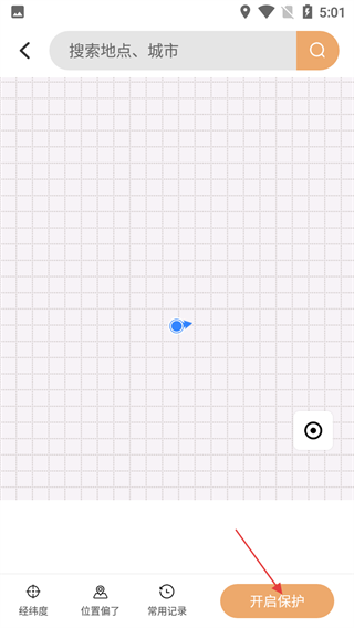 3、在位置保护页,可通过搜索或定位功能选择目标位置,确认后点击【开启保护】按钮。