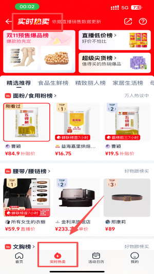 2、查看实时热卖:在“实时热卖”页面浏览热门商品,选择商品进行购买。