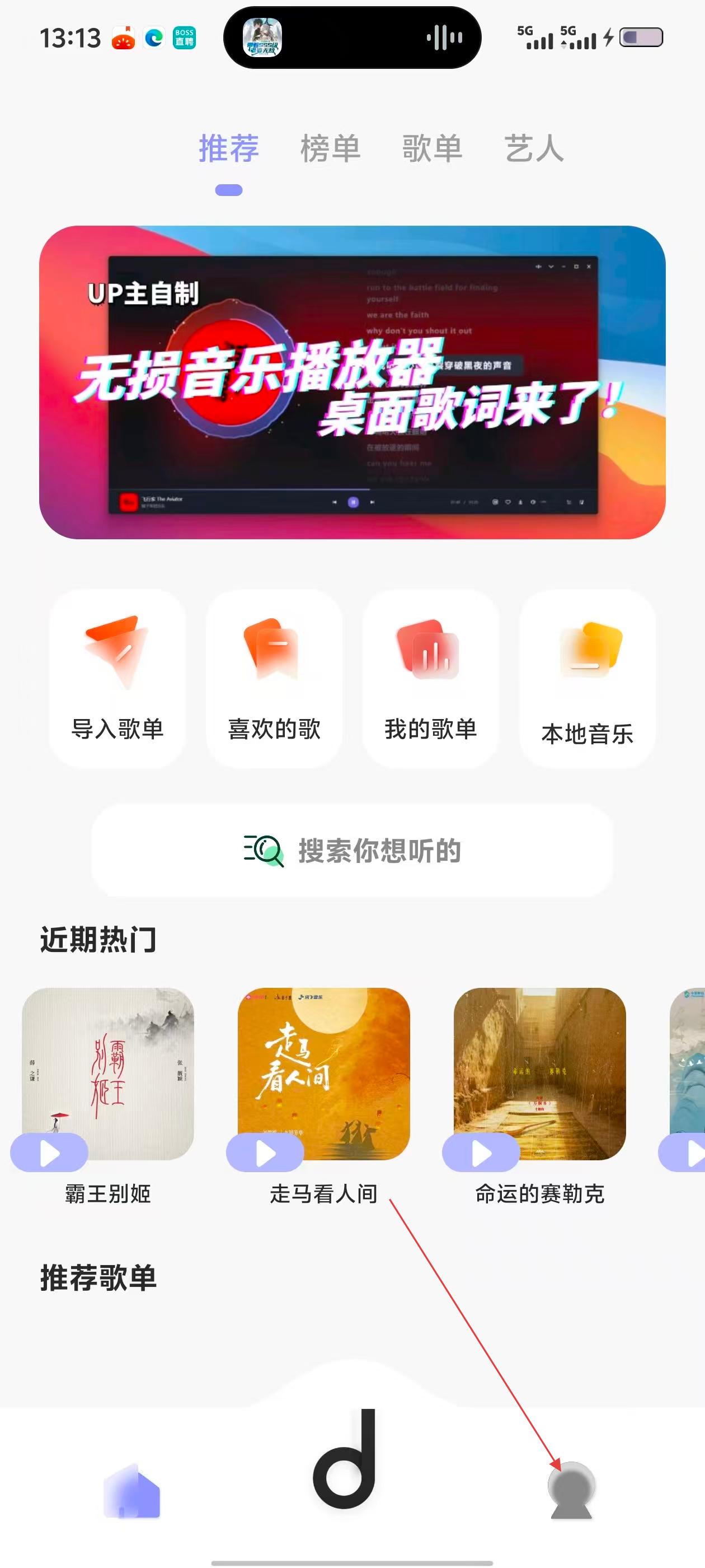 2、进入个人页面后,若需调整听歌音质,点击【选择在线听歌的音质】选项。