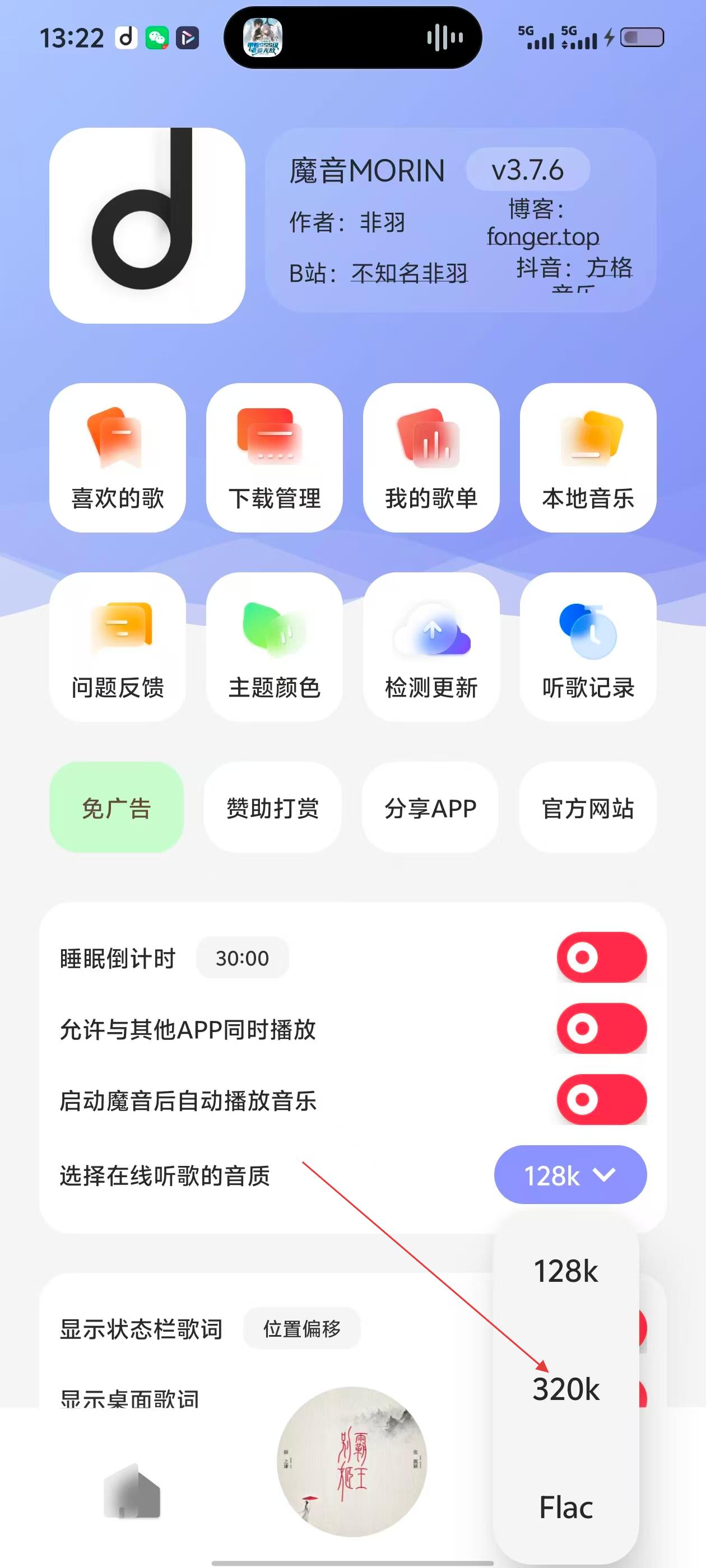 4、选择好【320k】音质后,即可按该音质在线听歌,享受更好的听觉体验。