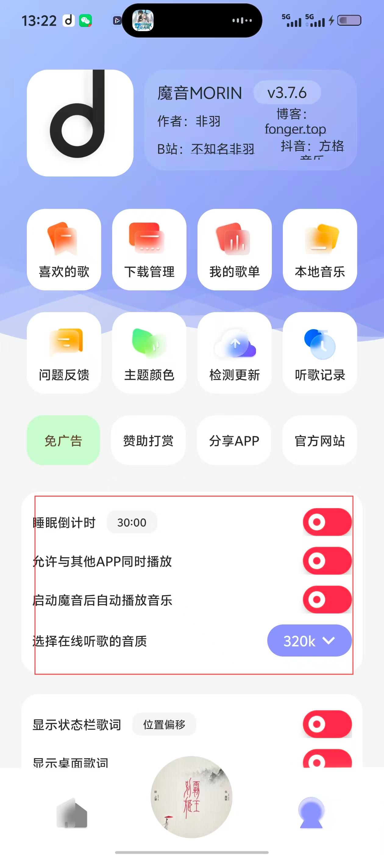 3.支持后台播放,可在使用其他应用时继续听音乐。