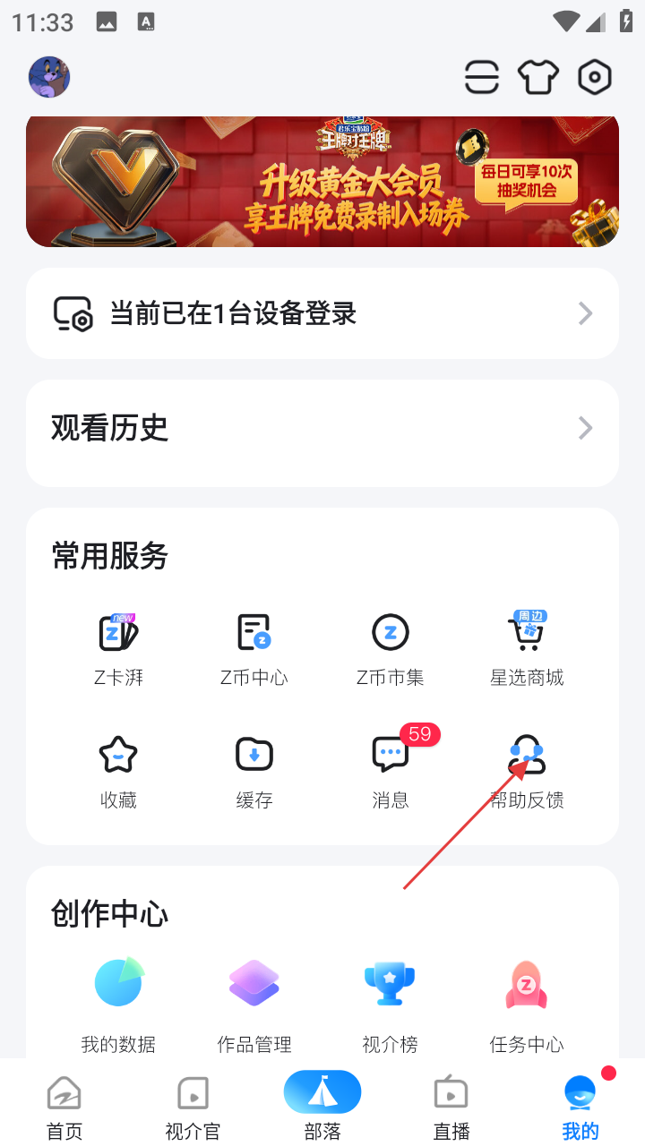 2、进入个人中心页面后,点击【帮助反馈】选项,进入帮助反馈界面。