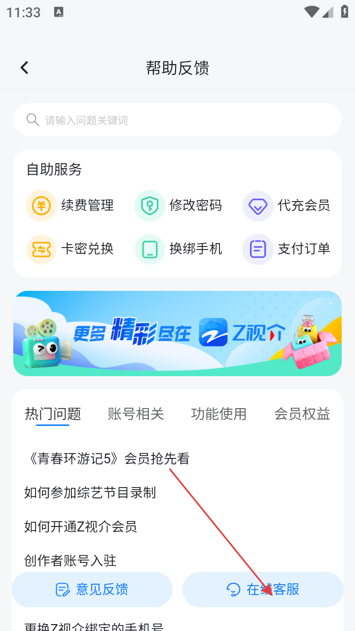 3、在帮助反馈界面,点击【在线客服】选项,进入客服对话页面。