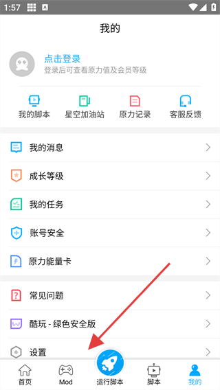 2、进入【我的】页面后,找到并点击【设置】选项,可进入应用的配置界面,调整各项功能参数。