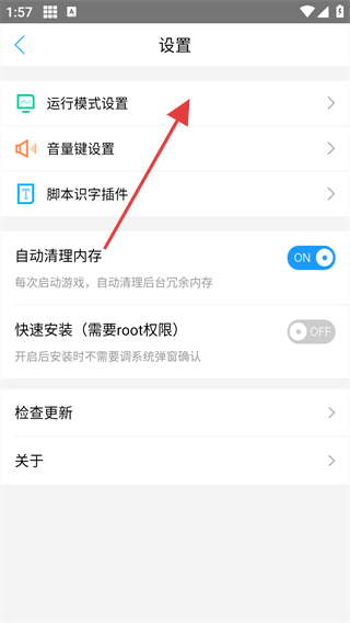 3、在【设置】页面中,点击【运行模式设置】选项,可进入对应界面,配置应用的运行权限及模式。