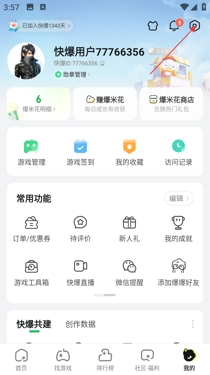 2、进入“我的”页面后,若要进入设置界面,点击右上角的齿轮形状设置图标。
