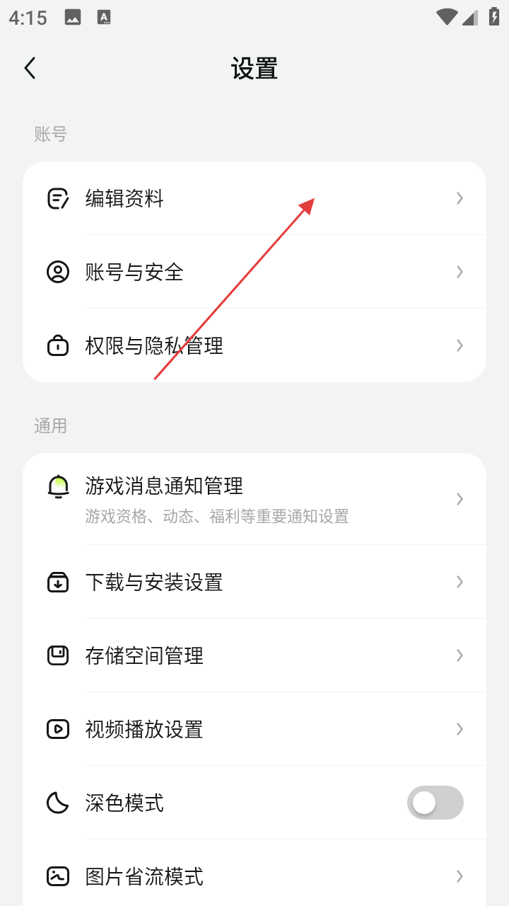 3、进入设置页面,若要编辑个人资料,点击【编辑资料】选项。
