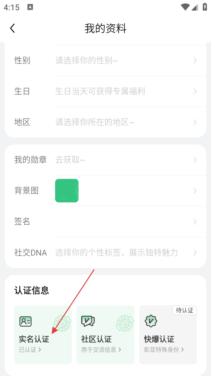 4、进入我的资料页面,可查看或编辑性别、生日等信息,也能进行实名认证等操作。