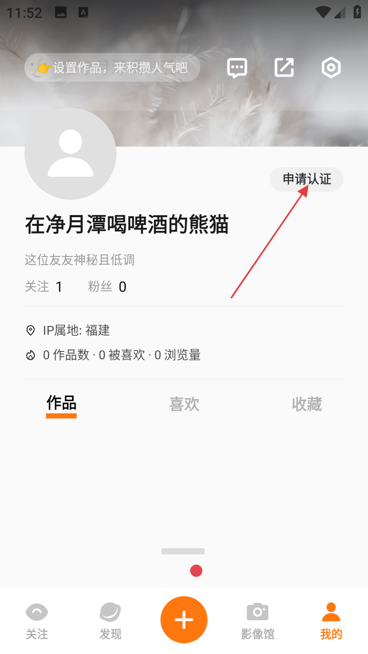 1、在vivo摄影APP“发现”界面,点击右下角【我的】按钮,进入个人中心,可查看个人信息、认证入口等界面。