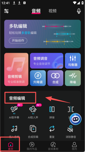 2、在音频编辑页面,点击“音频编辑”进入编辑模式。