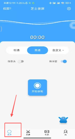 1、打开芝士录屏授予悬浮窗权限后点击开始录制进入设置。