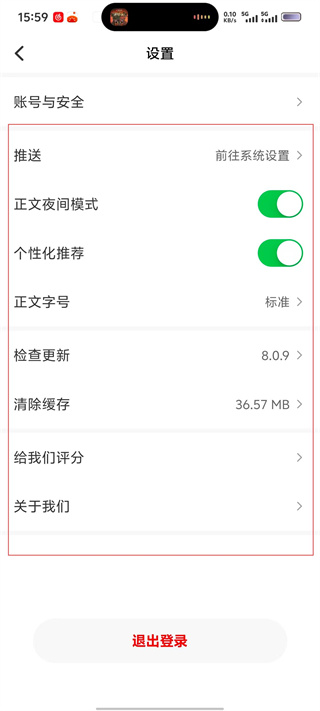 4、在【设置】页面开启【正文夜间模式】后,可优化夜间阅读体验,同时保留其他功能的正常使用。