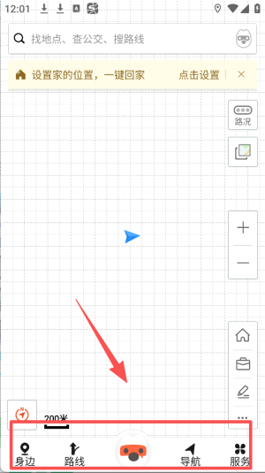 2、使用导航功能,点击底部导航栏的“导航”图标,开始路线规划。