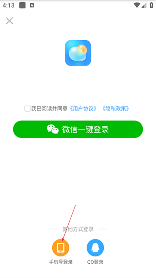 3、在登录选择界面,选择【手机号登录】选项,进入手机号登录页面。
