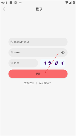 4、在登录界面填好【用户名】【密码】和【1301】验证码后,点击【登录】按钮,即可完成账号登录,进入个人中心使用相关功能。