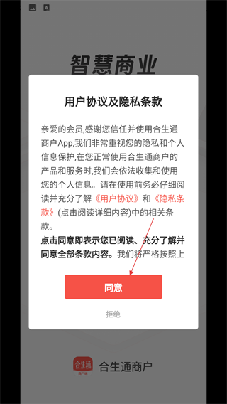1、打开App后,在弹出的《用户协议及隐私条款》弹窗中,点击【同意】按钮,确认相关协议条款。