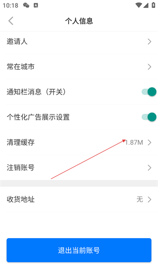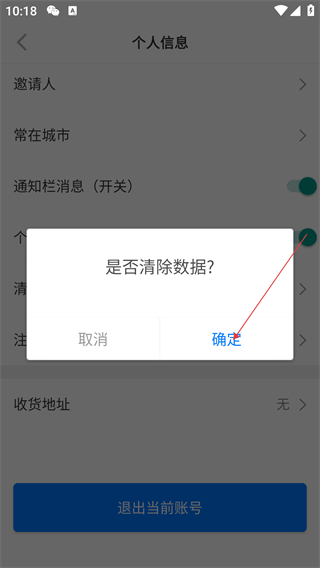 3、在个人信息页面,点击【清理缓存】选项,弹出“是否清除数据?”的确认弹窗。