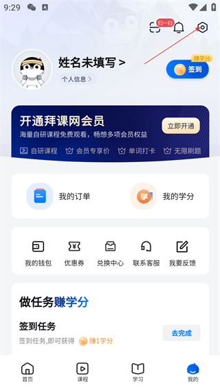 2、在个人中心页面,点击右上角的设置图标,进入设置界面。