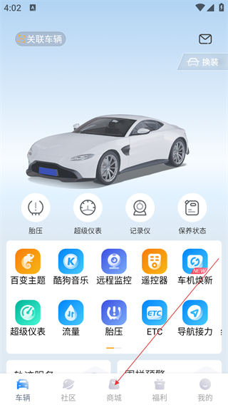 1、进入兜风APP的“车辆”页面,可使用胎压、超级仪表等车辆相关功能。