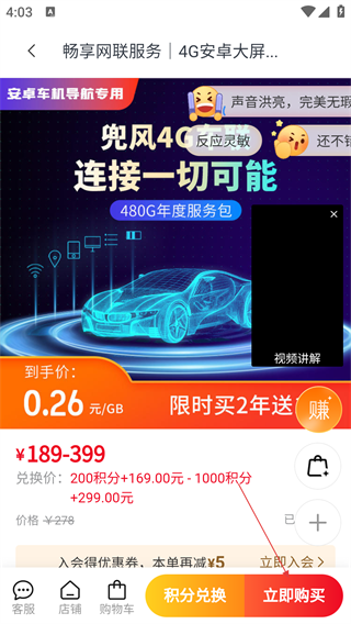 3、在商品详情页,点击【立即购买】,进入商品组合选择页面。
