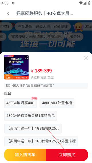 4、在组合选择页,选择所需的服务组合,确认后完成购买流程,即可获取对应的车联服务。